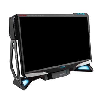 Ani v případě tower monitoru E-Blue nezapomnělo na atraktivní podsvícení. V přední části monitoru jsou jemně podsvíceny boční strany konstrukce monitoru a logo E-Blue. Zadní části dominuje podsvícený kryt hardwarového vybavení.